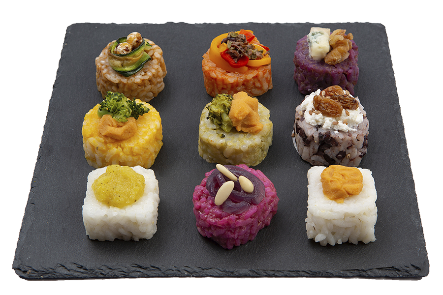 Vivaci roll di riso, vegani o vegetariani con topping di verdure, preparati freschi ogni giorno, ideali per un pranzo, un aperitivo o una cena leggera, sana, sfiziosa, priva di allergeni, senza glutine e lattosio.